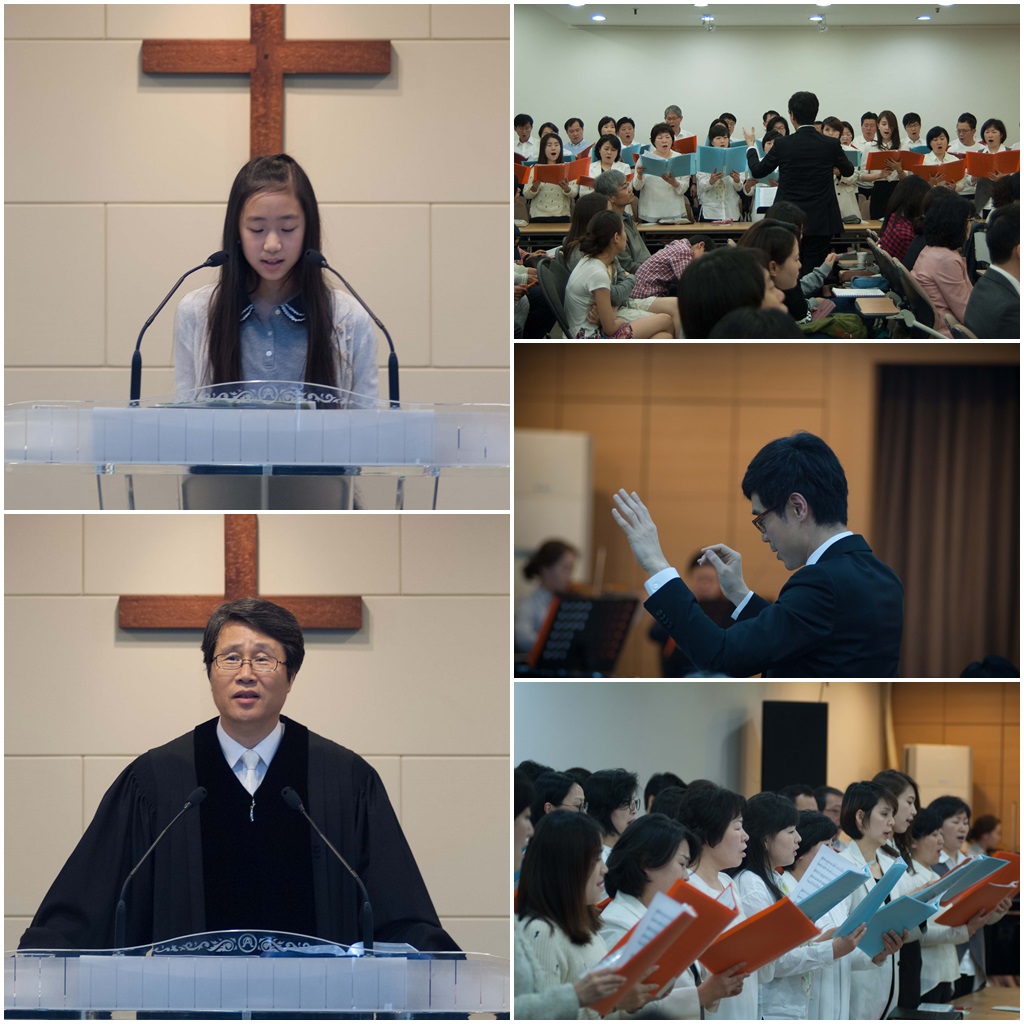 여섯, 오늘 예배의 말씀 봉독은 유초등부의 정민주 어린이가 했습니다. 연합예배에 주일학교도 참여하는 예배를 드리고자