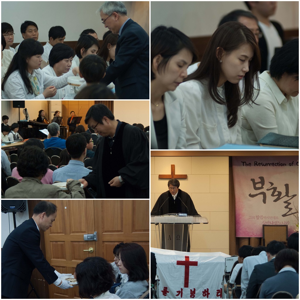여덟, 목사님의 말씀 후 성찬식이 있었습니다.
