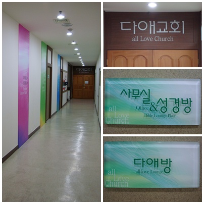 나지는 않았었습니다. 그런데 바로 어제 마지막으로 간판을 달았습니다. 각 방마다 사무실과 본당, 목양실과 유