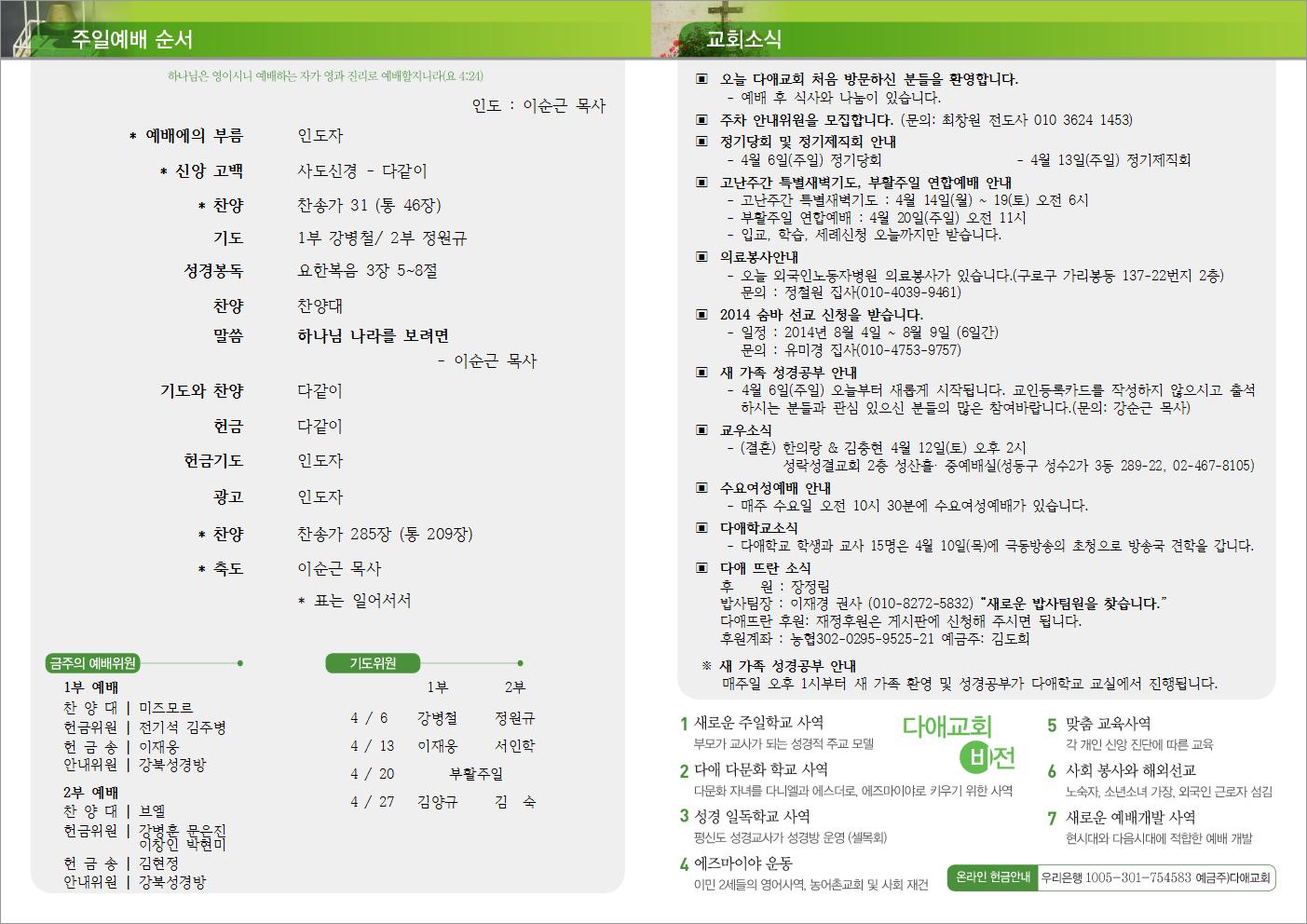 2014년 4월 6일 주일예배 주보
