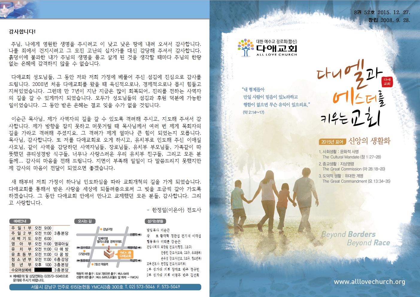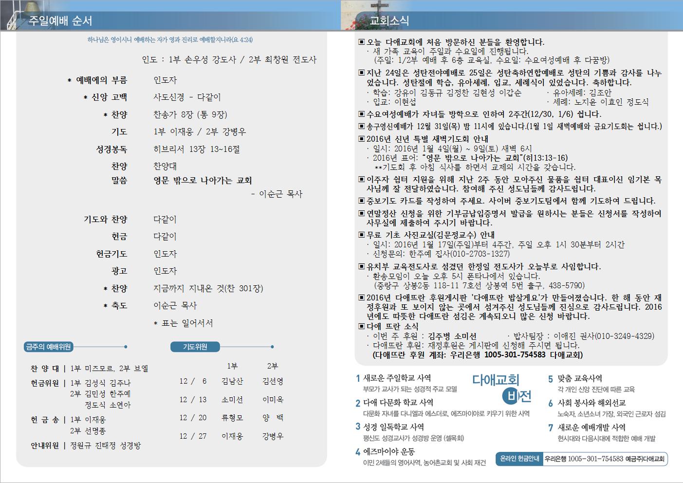 2015년 12월 27일 주일예배 주보
