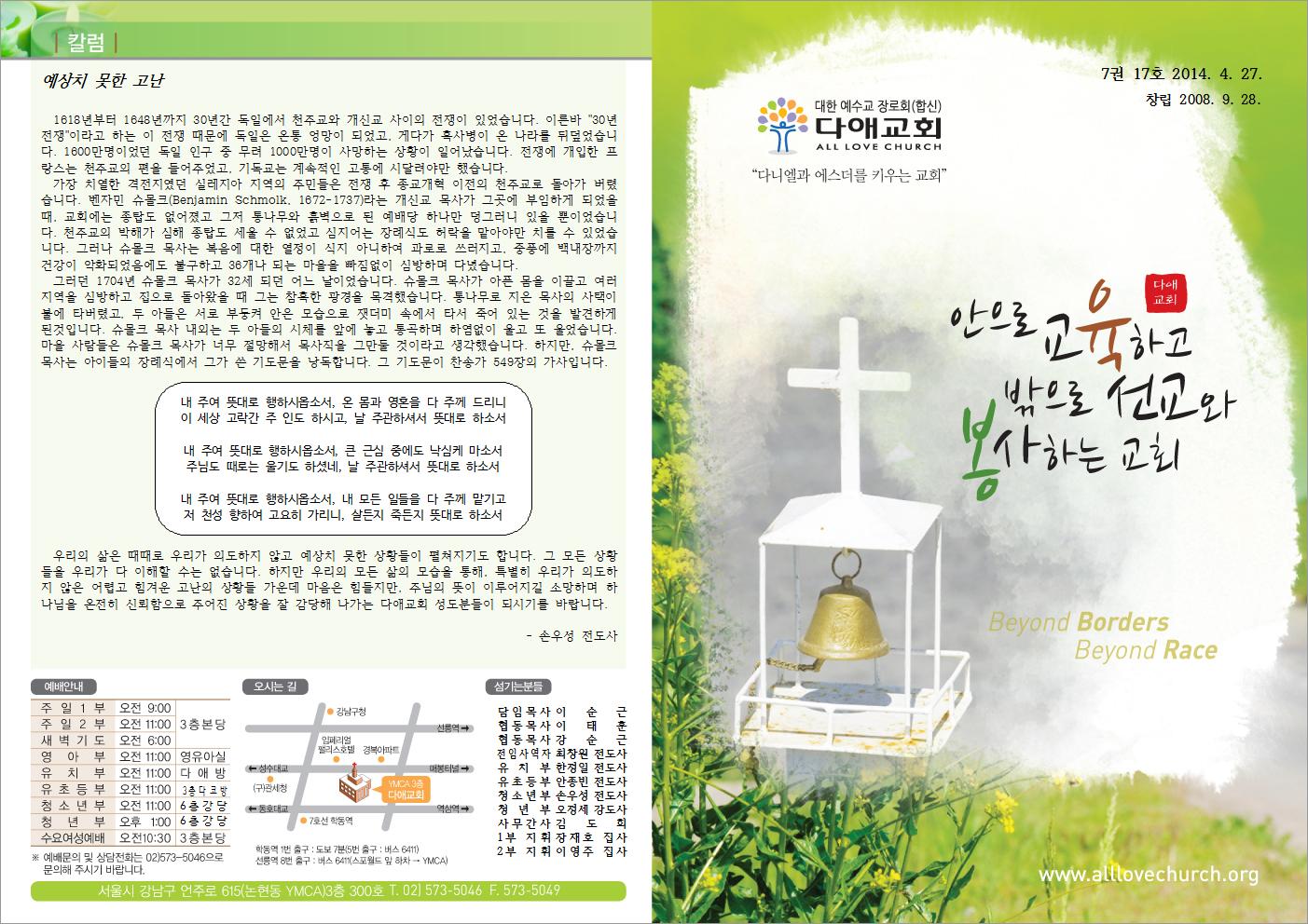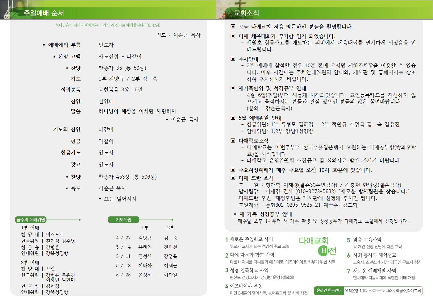 2014년 4월 27일 주일예배 주보