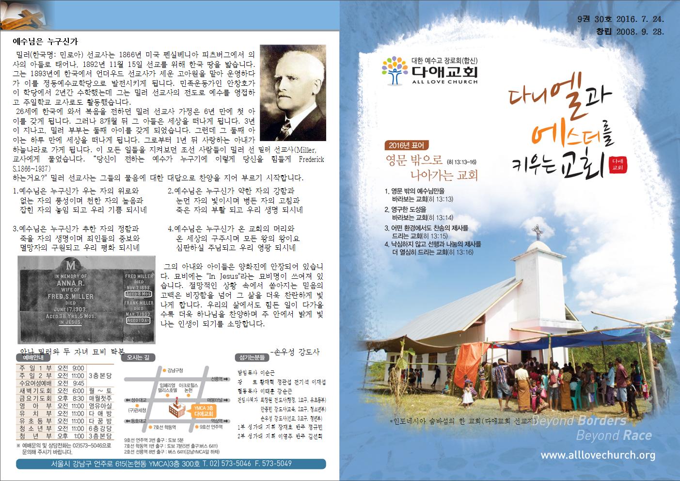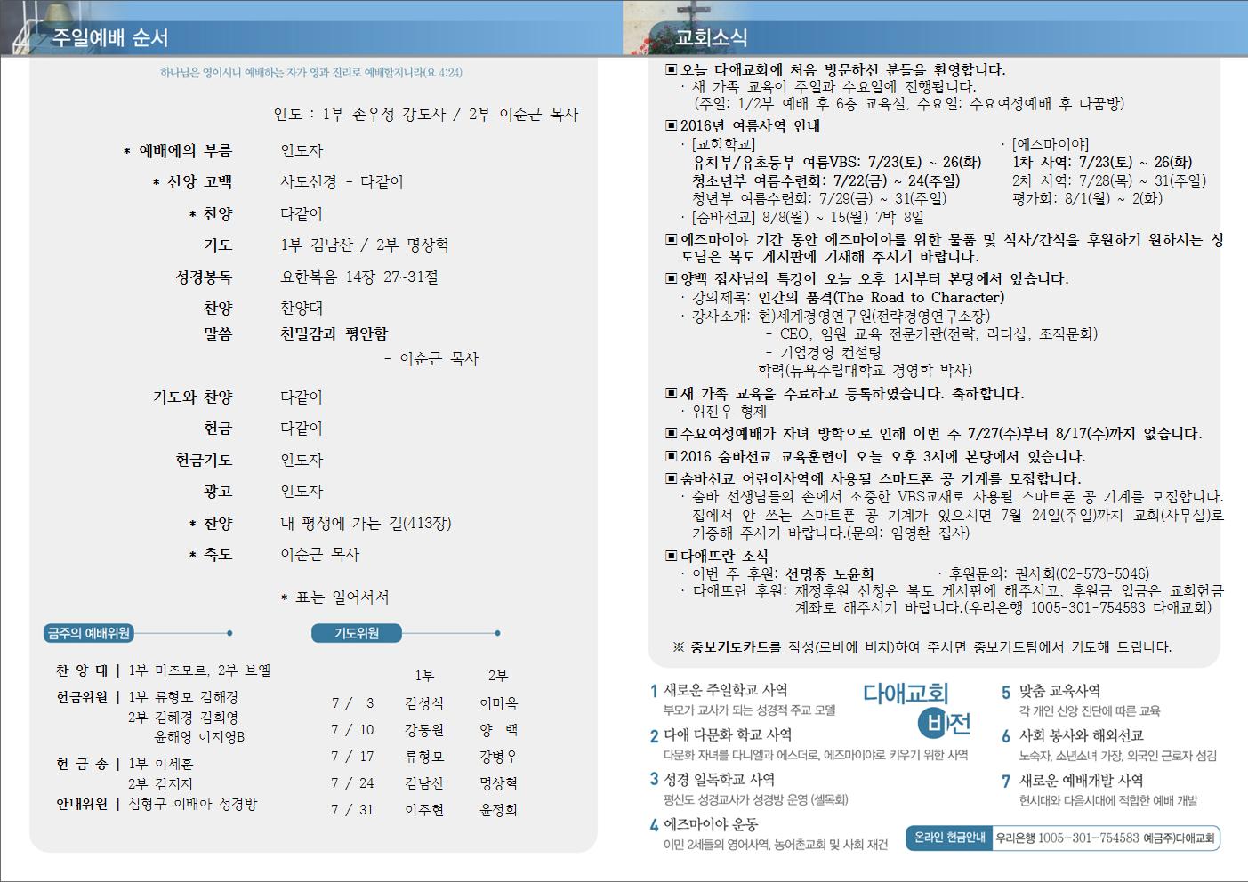 2016년 7월 24일 주일예배 주보