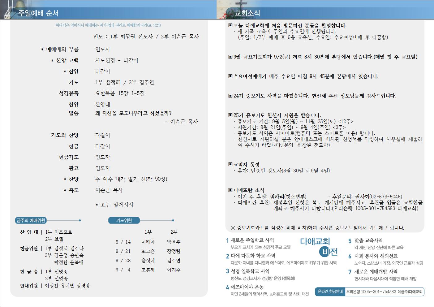 2016년 8월 28일 주일예배 주보