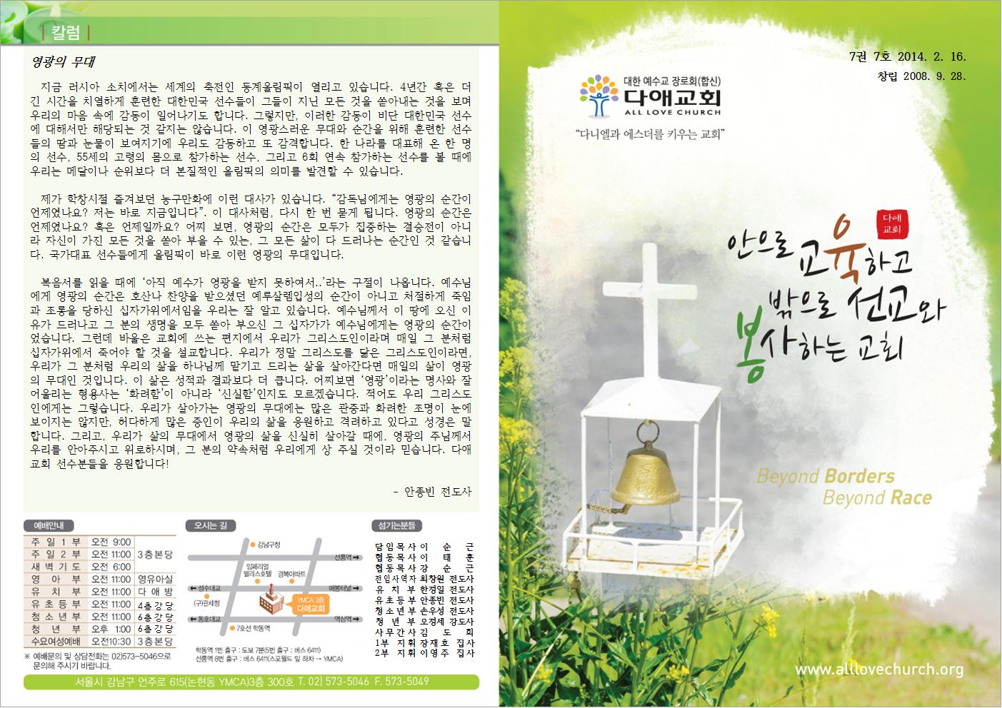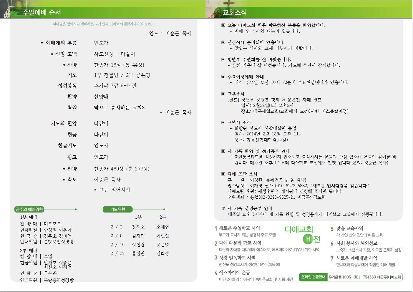 2014년 2월 16일 주일예배 주보