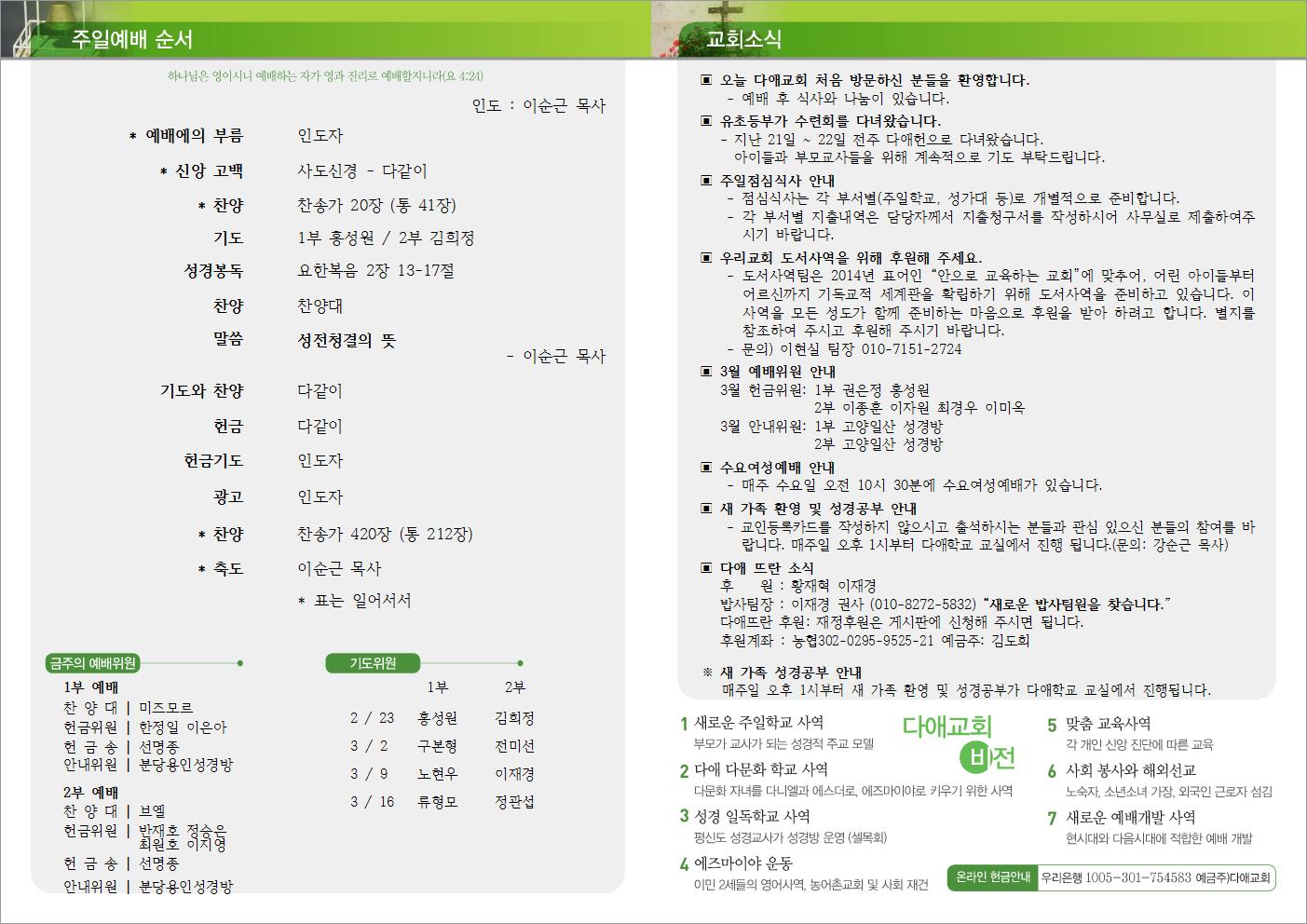 2014년 2월 23일 주일예배 주보