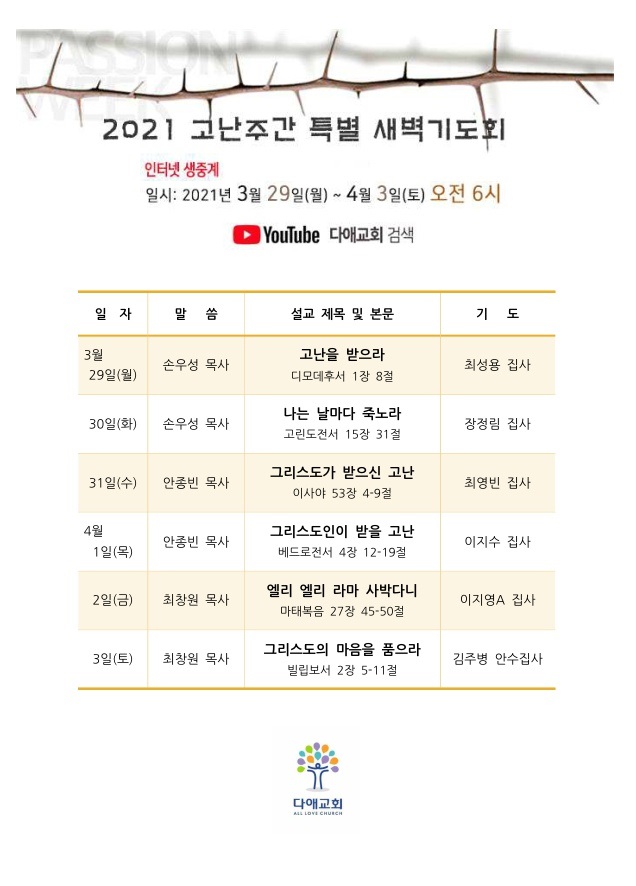 2021년 고난주간 특별 새벽기도회
