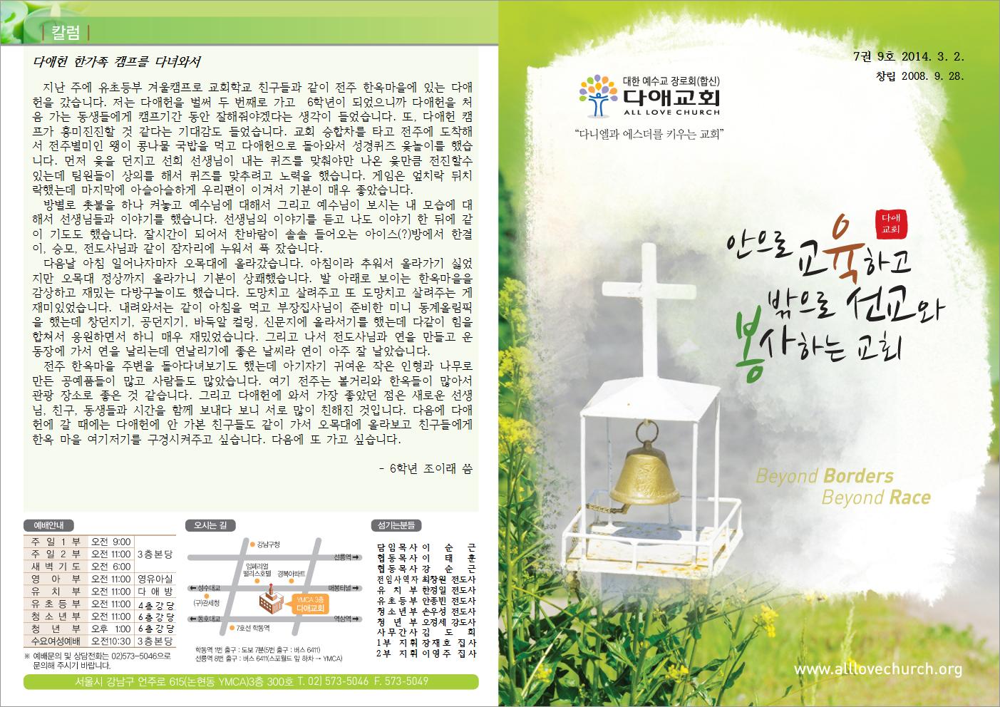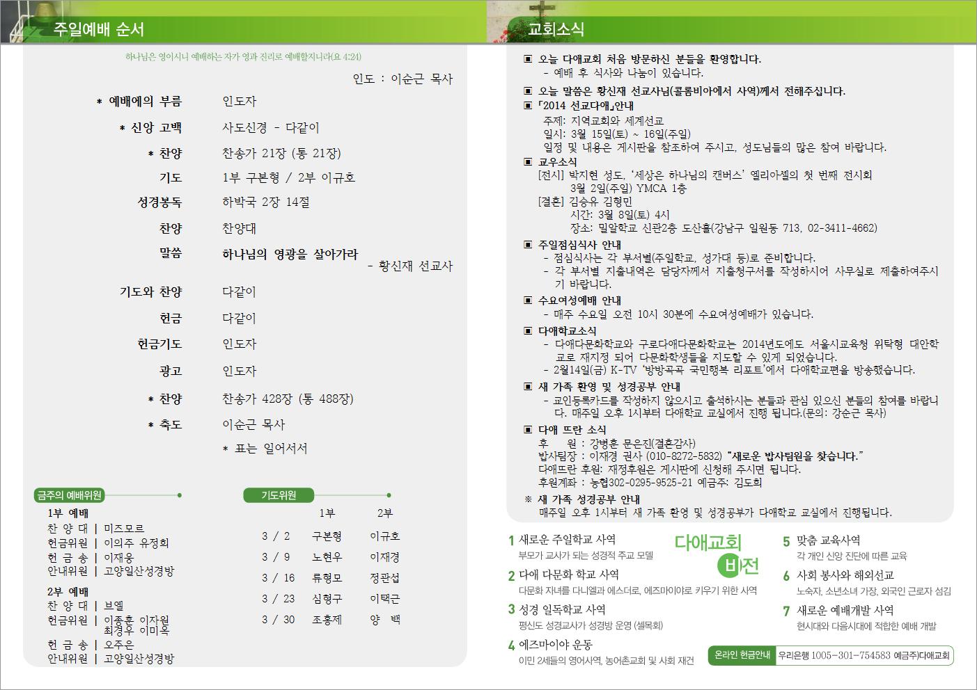 2014년 3월 2일 주일예배 주보