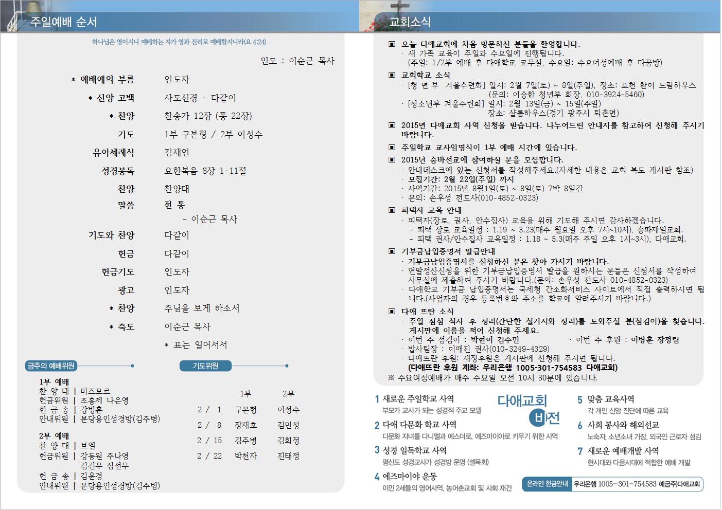 2015년 2월 1일 주일예배 주보
