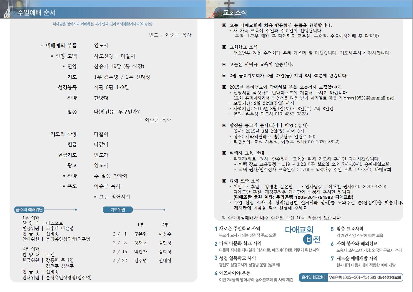 2015년 2월 22일 주일예배 주보