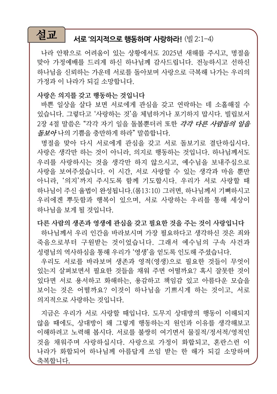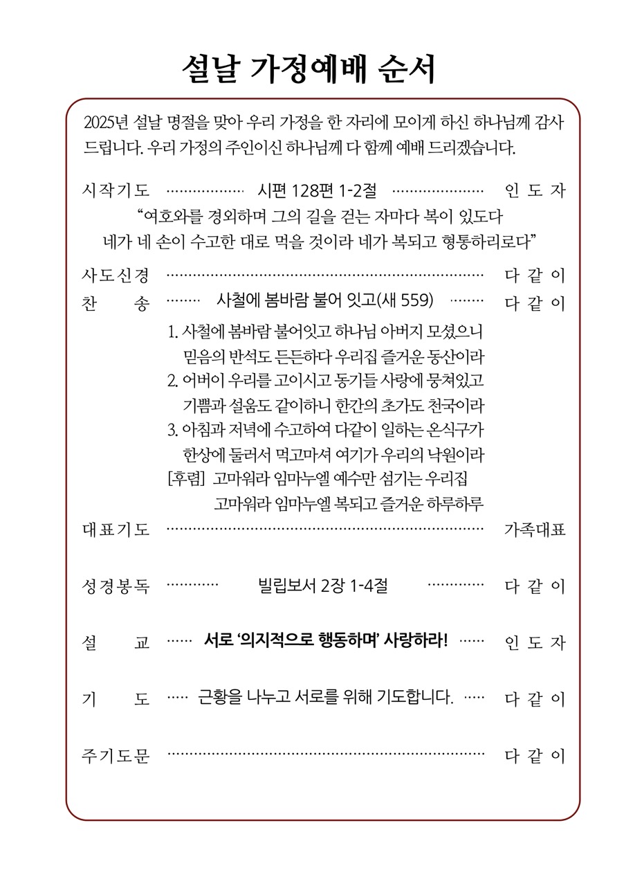 2025 설날 가정예배 순서지