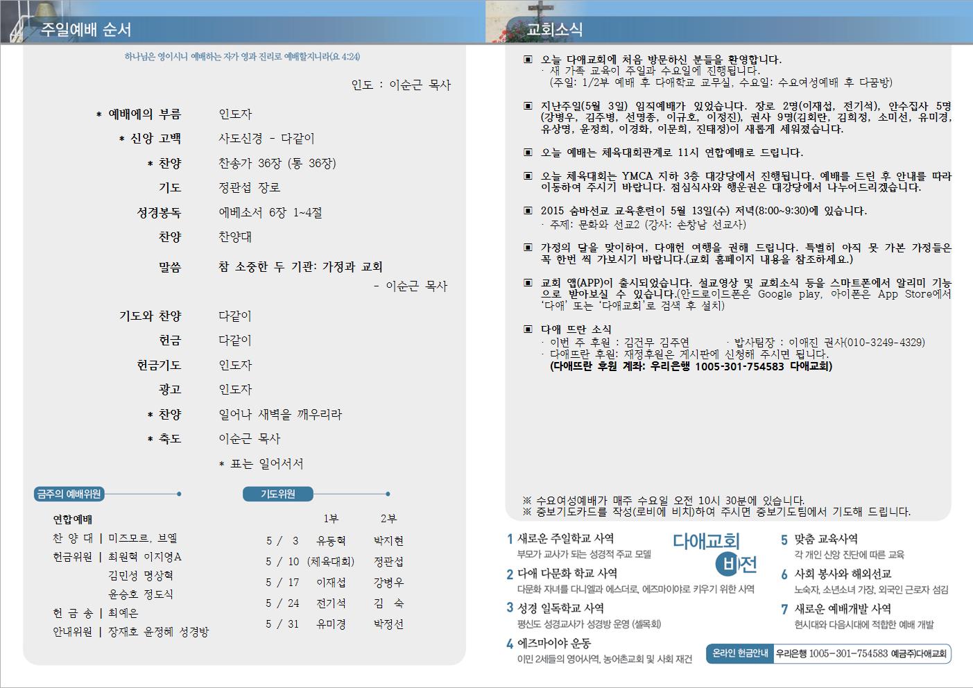 2015년 5월 10일 주일예배 주보