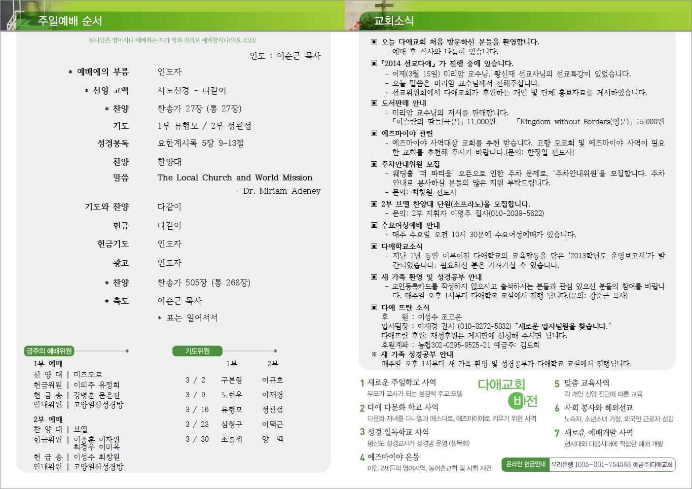 2014년 3월 16일 주일예배 주보