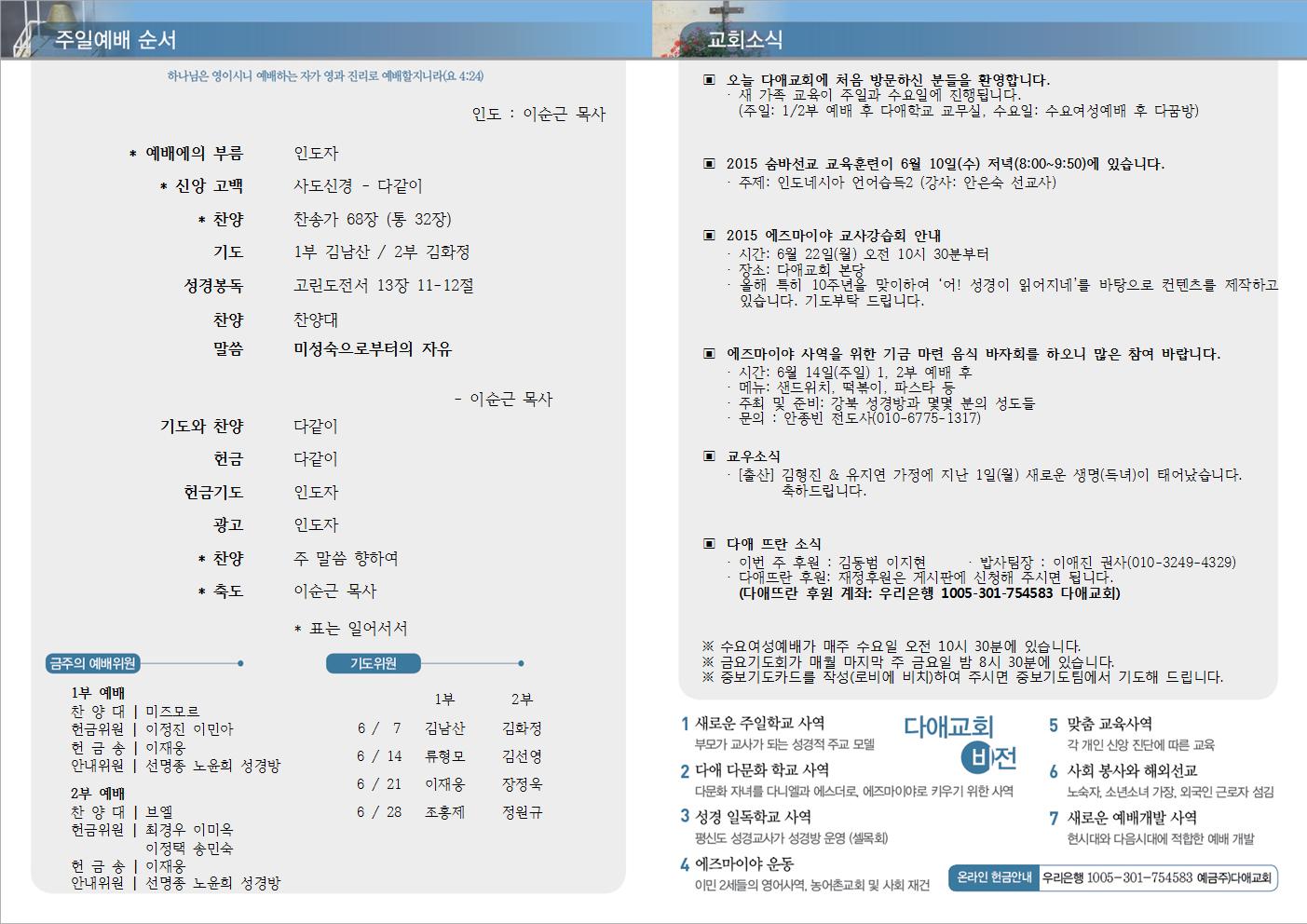 2015년 6월 7일 주일예배 주보