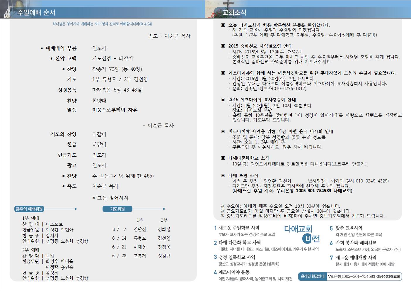 2015년 6월 14일 주일예배 주보