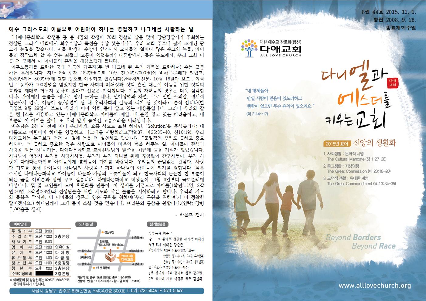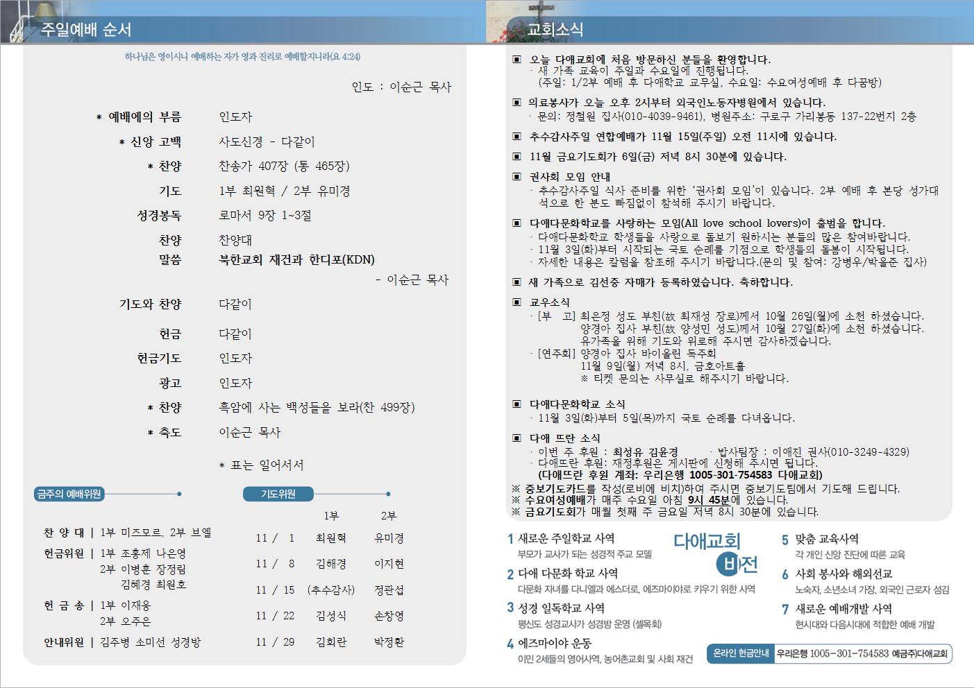 2015년 11월 1일 주일예배 주보