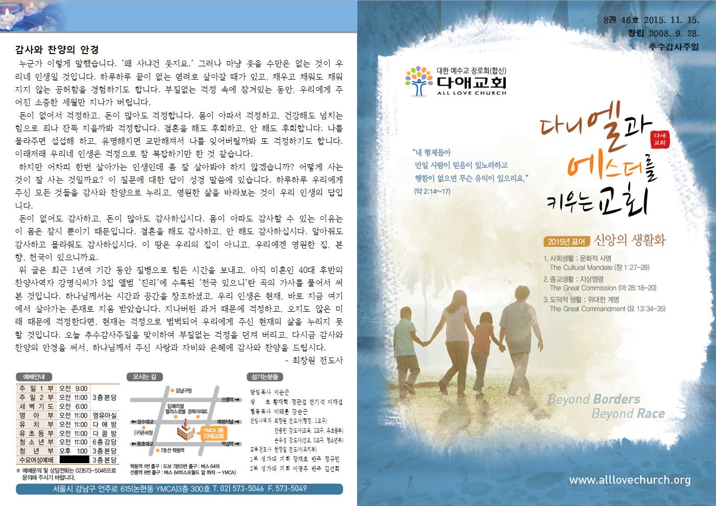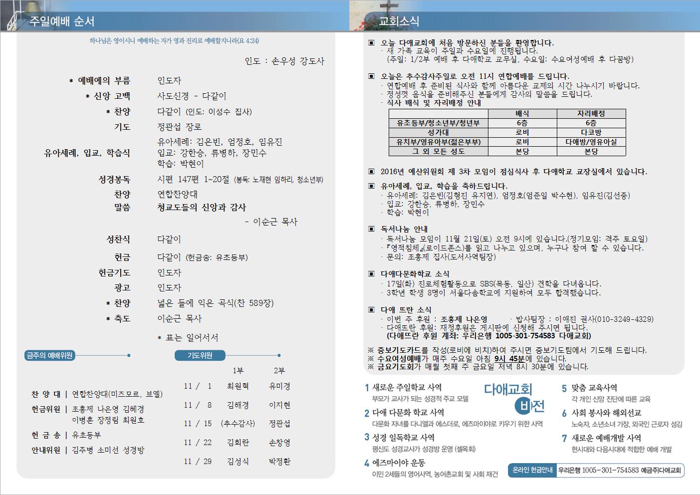2015년 11월 15일 주일예배 주보