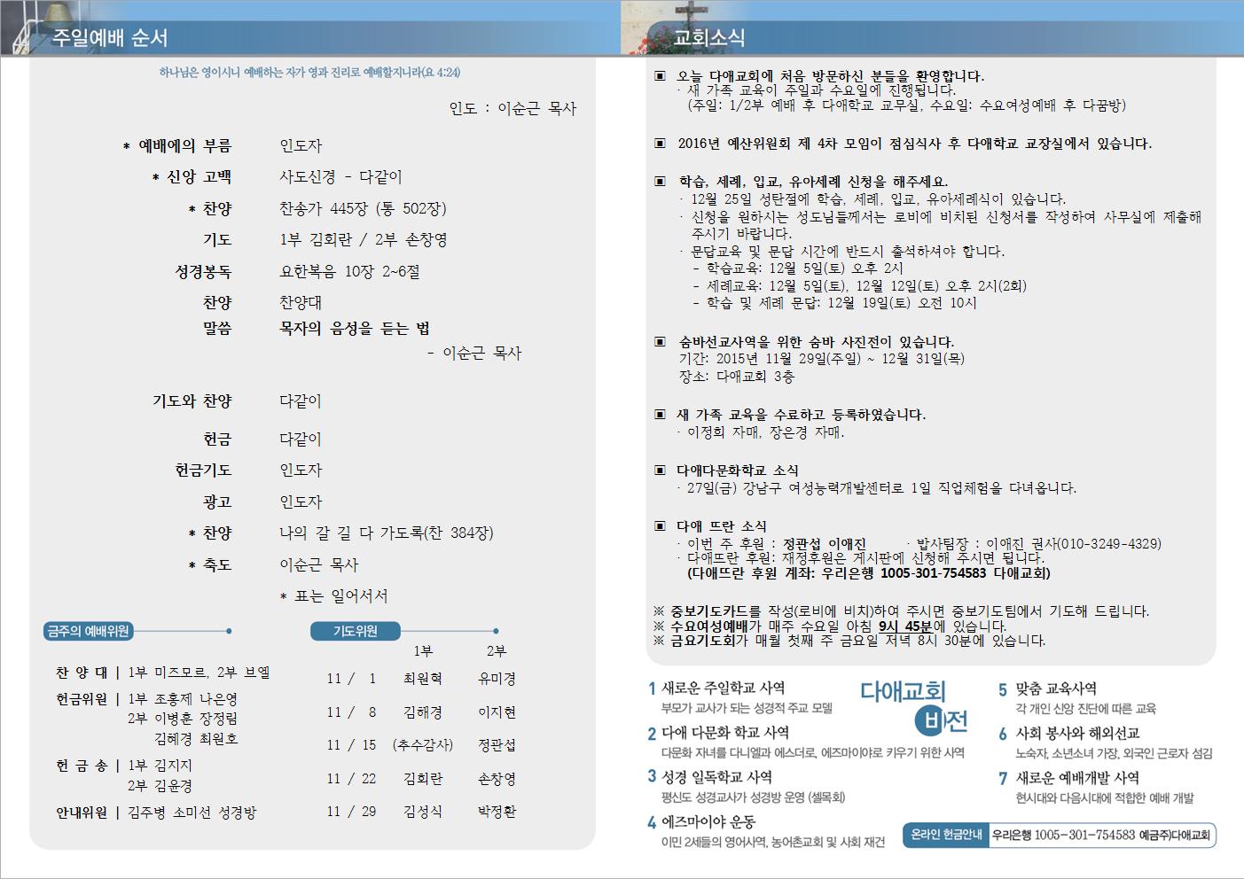 2015년 11월 22일 주일예배 주보
