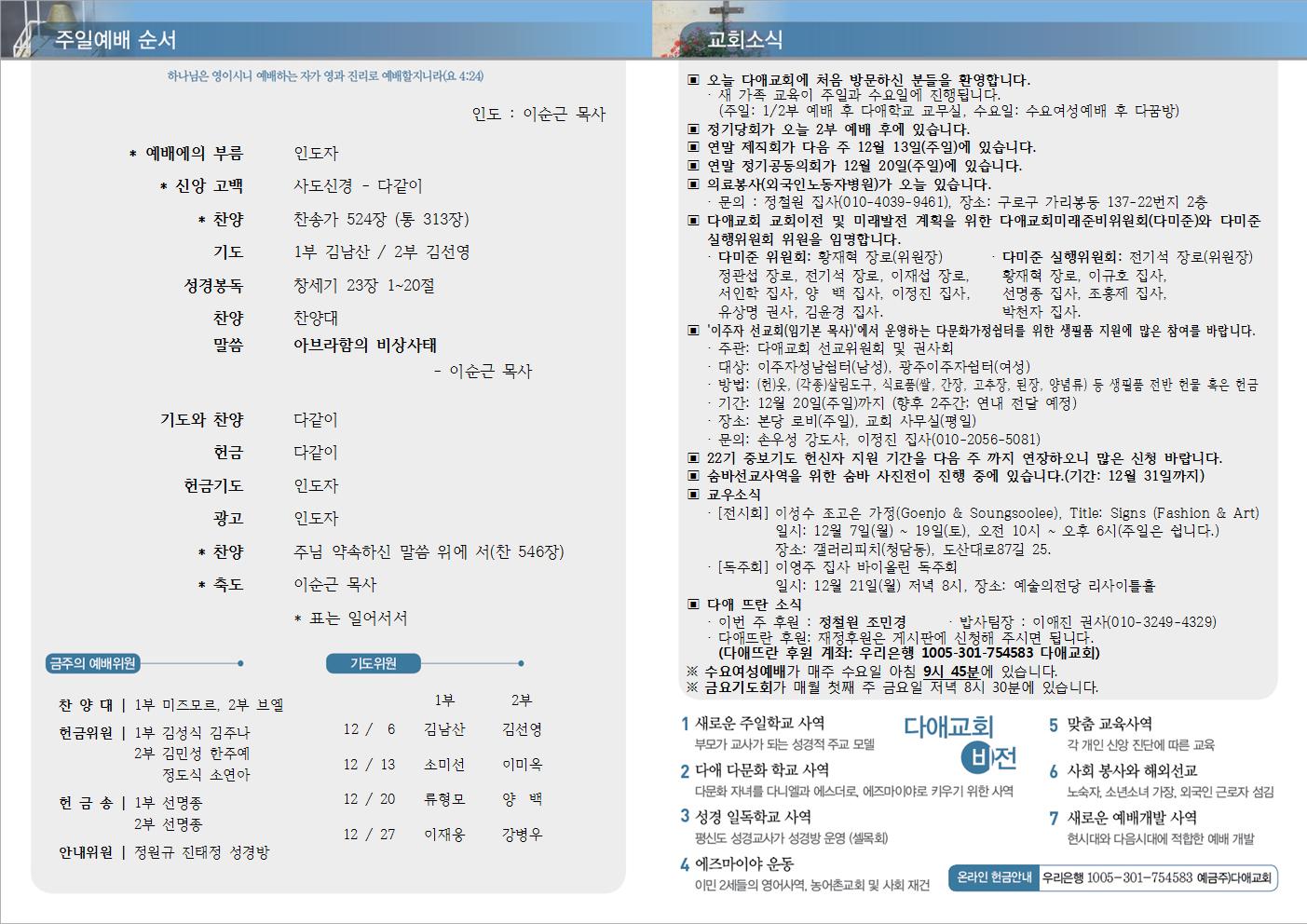 2015년 12월 6일 주일예배 주보