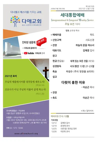 2021년 12월 31일 송구영신예배 주보