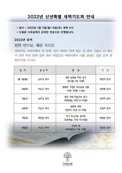 2022년 신년특새 주보(1/3-8, 월-토)