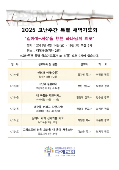 2025년 고난주간 특별 새벽기도회