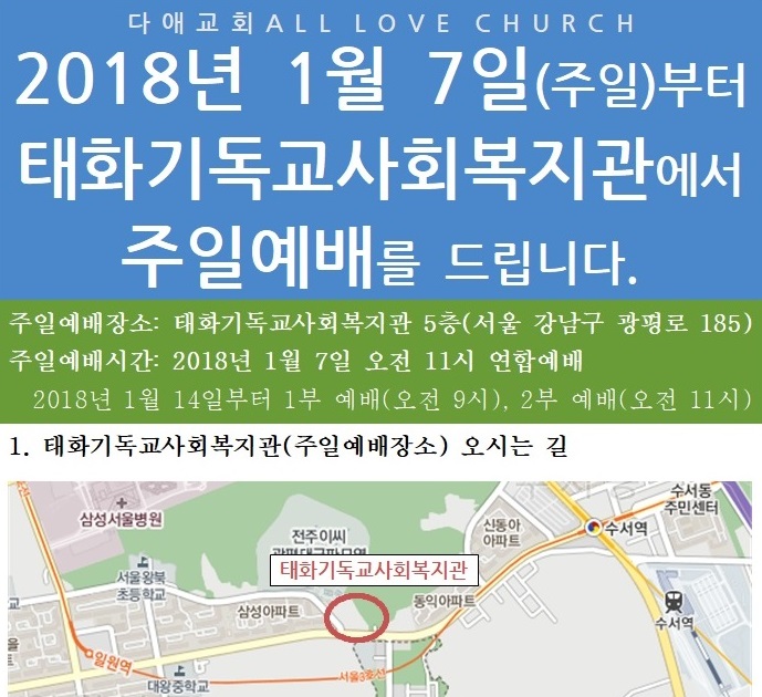 주일예배장소: 태화기독교사회복지관 5층 아바드홀