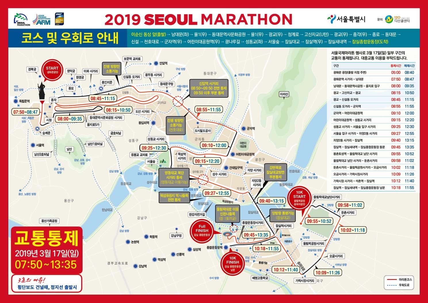 교통통제 안내(3/17, 서울국제마라톤 대회로 일부구간 통제)