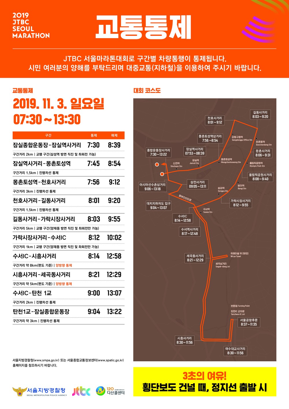 교통통제 안내(11/3, JTBC서울마라톤 대회로 수서역 인근 교통통제)