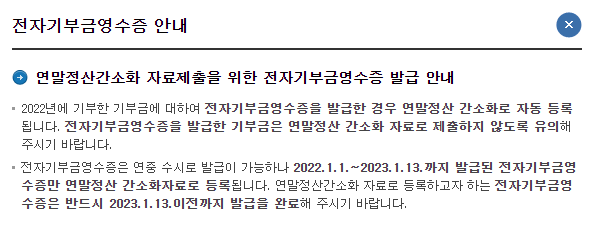 2022년 기부금영수증 발급 안내