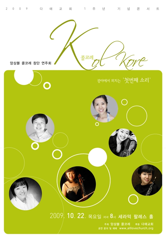 2009 다애교회 1주년 기념 콘서트 앙상블 콜코레 창단 연주회가 열립니다.