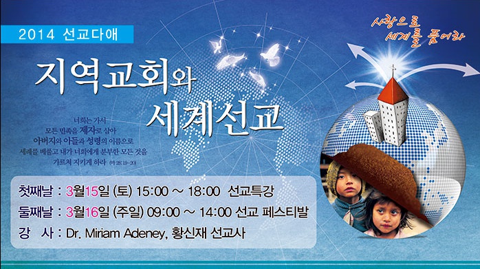 "2014 선교다애" 라는 제목으로 다음과 같이 세미나와 특강이 준비되어있습니다.